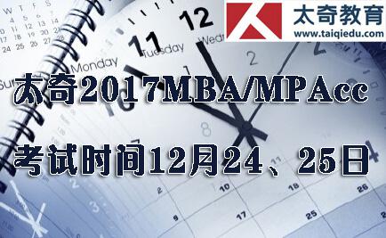 太奇2017MBA/MPAcc考试时间12月24、25日