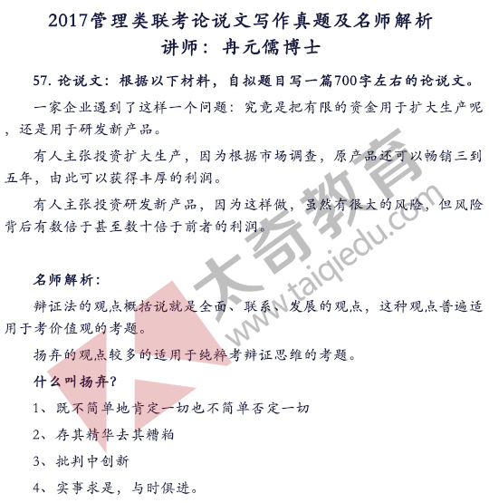 冉元儒博士解析2017年MBA联考写作真题(附参考范文