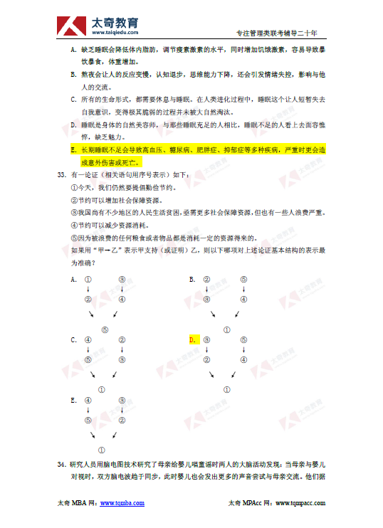 2019年管理类联考综合能力逻辑真题及参考答案(3)