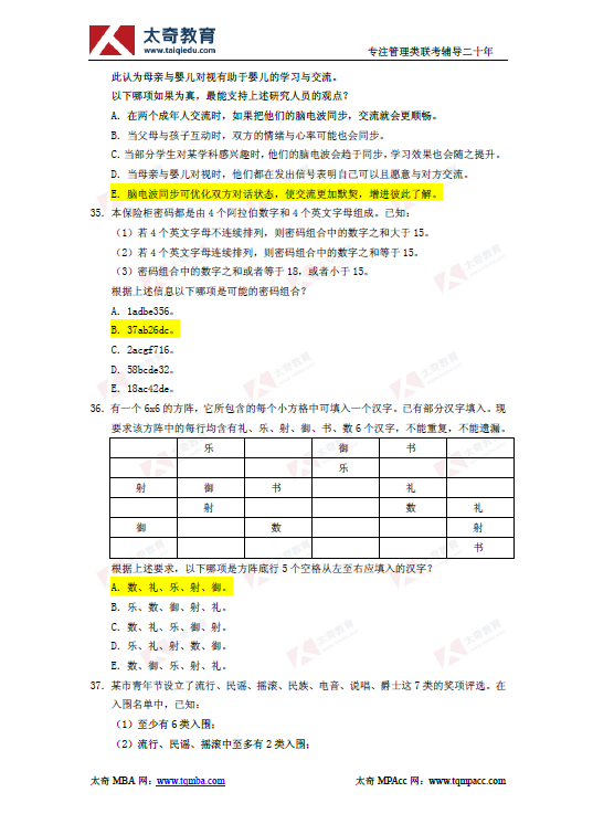 2019年管理类联考综合能力逻辑真题及参考答案(4)