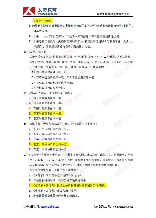 2019年管理类联考综合能力逻辑真题及参考答案(9)