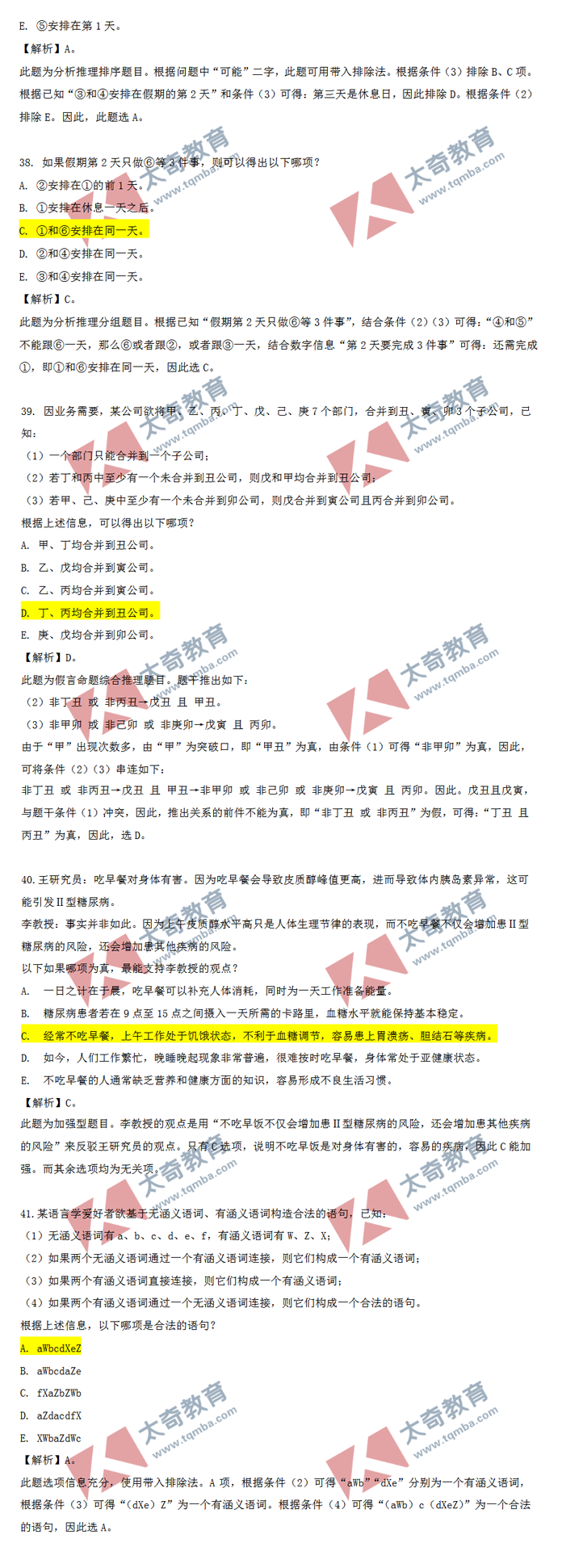 2020年MBA/MEM管理类联考逻辑真题解析(4)