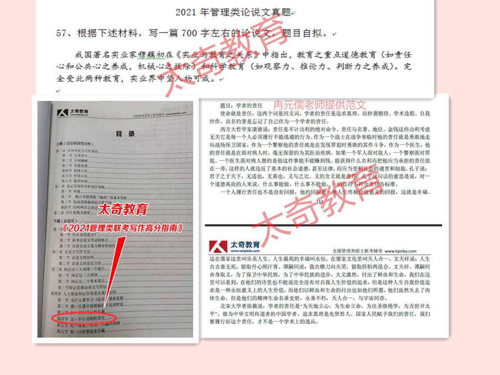 太奇2021年MBA管理类联考写作真题命中对照