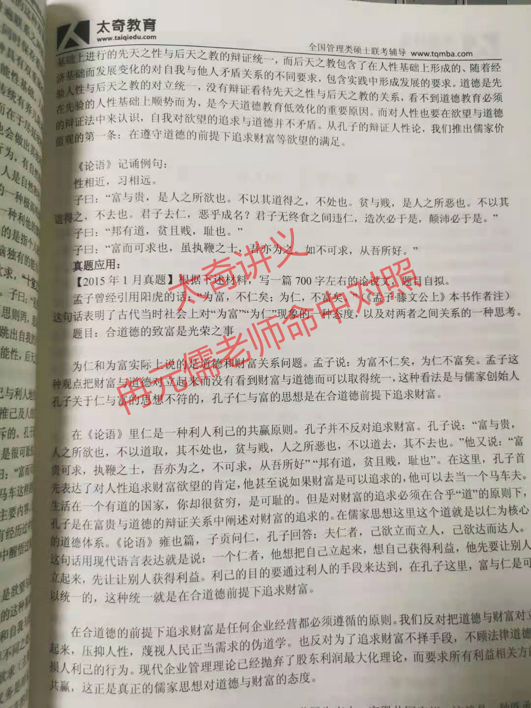喜贺太奇教育冉元儒老师命中联考写作论说文