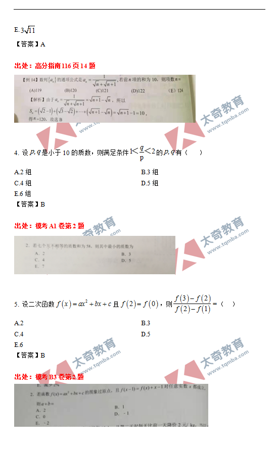 太奇2021年MBA管理类联考数学真题命中对照(2)
