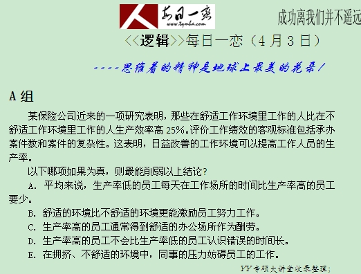 【太奇MBA 2014年4月3日】 MBA逻辑每日一练