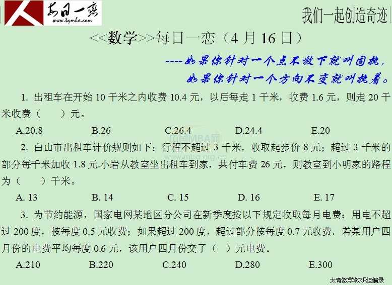 【太奇MBA 2014年4月16日】 MBA数学每日一练