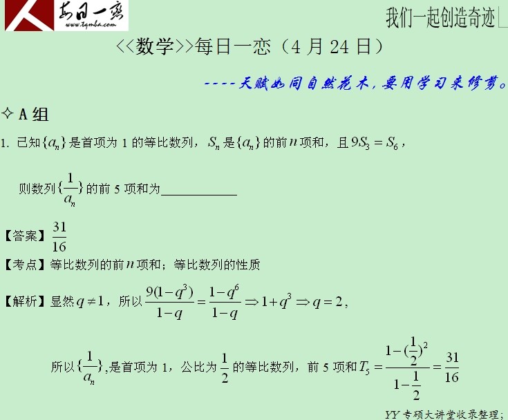 【太奇MBA 2014年4月24日】 MBA数学每日一练