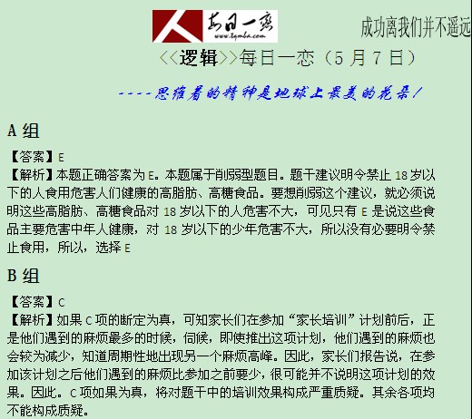 【太奇MBA 2014年5月7日】 MBA逻辑每日一练