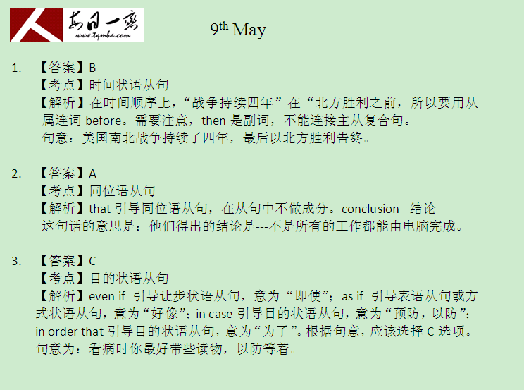 【太奇MBA 2014年5月9日】 MBA英语每日一练