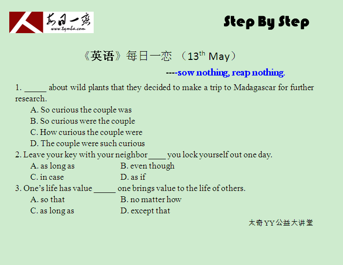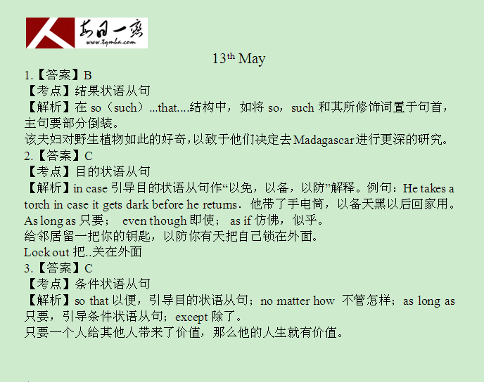 【太奇MBA 2014年5月13日】 MBA英语每日一练