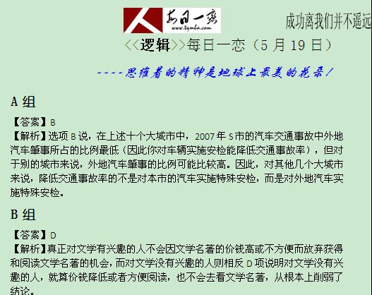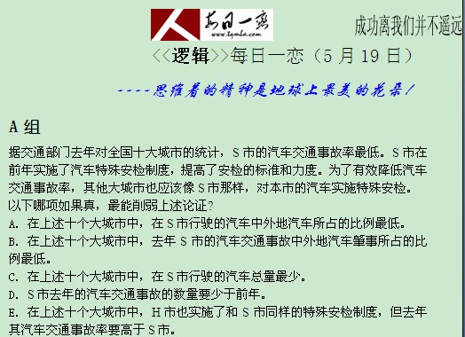 【太奇MBA 2014年5月19日】 MBA逻辑每日一练