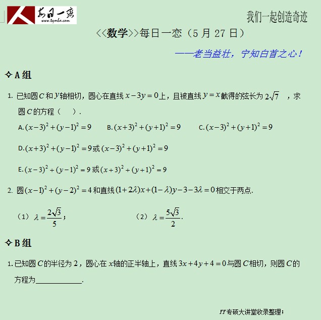 从本周一(5月26日)开始,每日一“恋”各科不再发放详解,相关题目解析每周在太奇YY大讲堂由老师进行统一讲解,每周课程在太奇YY大讲堂万人备考群进行公布,YY群号:9444754  YY听课频道:57378066