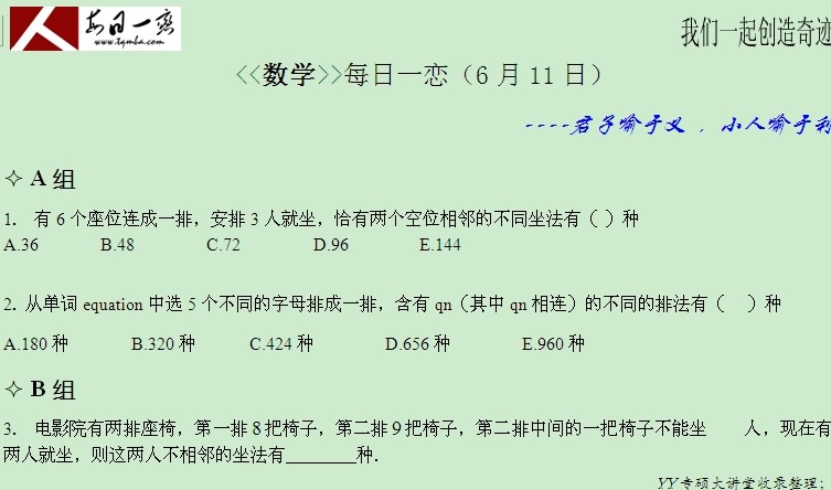 【太奇MBA 2014年6月11日】 MBA数学每日一练