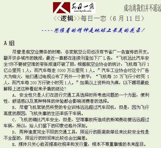 【太奇MBA 2014年6月11日】 MBA逻辑每日一练