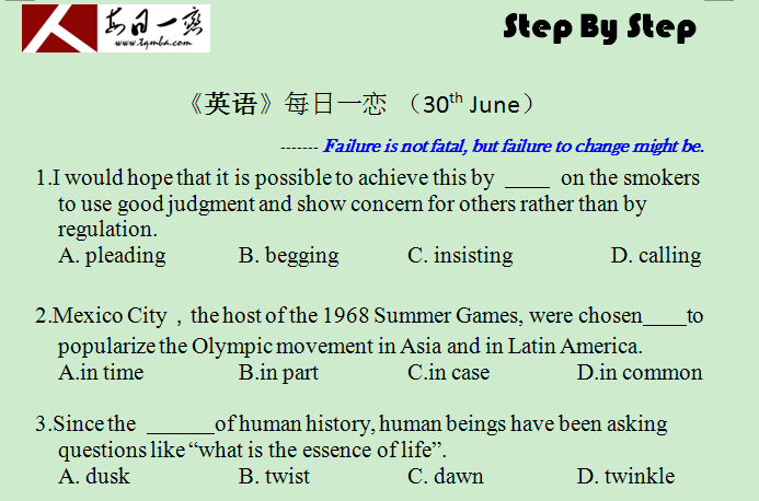 【太奇MBA 2014年6月30日】 MBA英语每日一练