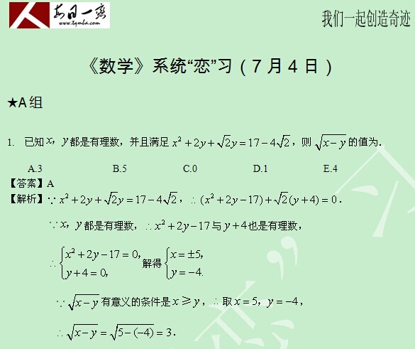 【太奇MBA 2014年7月7日】 MBA数学每日一练