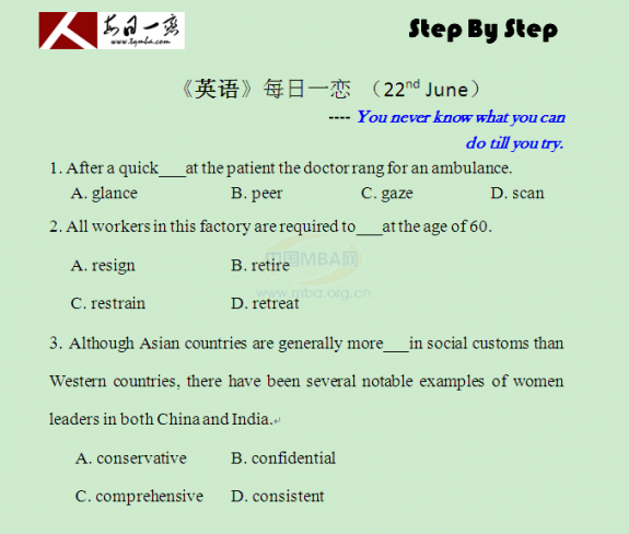 【太奇MBA 2015年6月22日】MBA英语每日一练