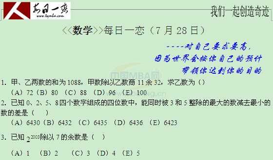 【太奇MBA 2015年7月28日】MBA数学每日一练