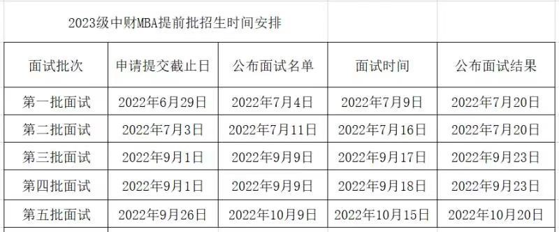 中央财经大学MBA教育中心将组织专家评委对申请材料进行评分,择优给予部分考生提前批面试资格。如果在提前批面试阶段未获得面试资格或者提前批面试成绩不合格,考生仍可报考中财MBA,联考成绩达到我校复试线,符合学校规定的面试条件者,可获得参加正常批面试的资格。