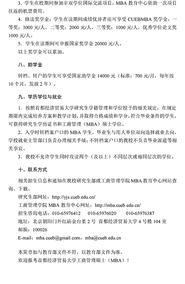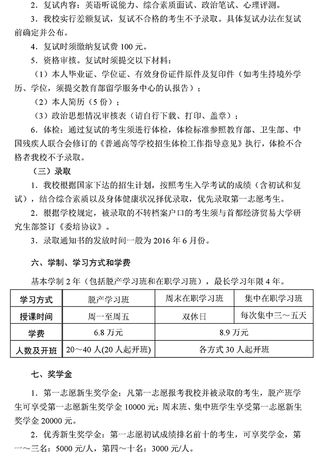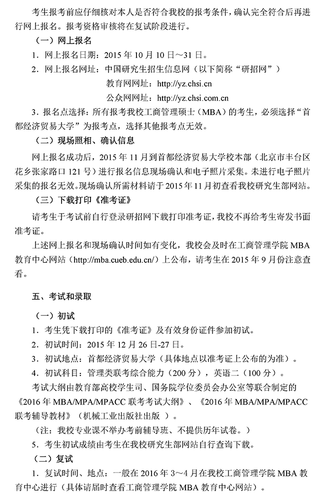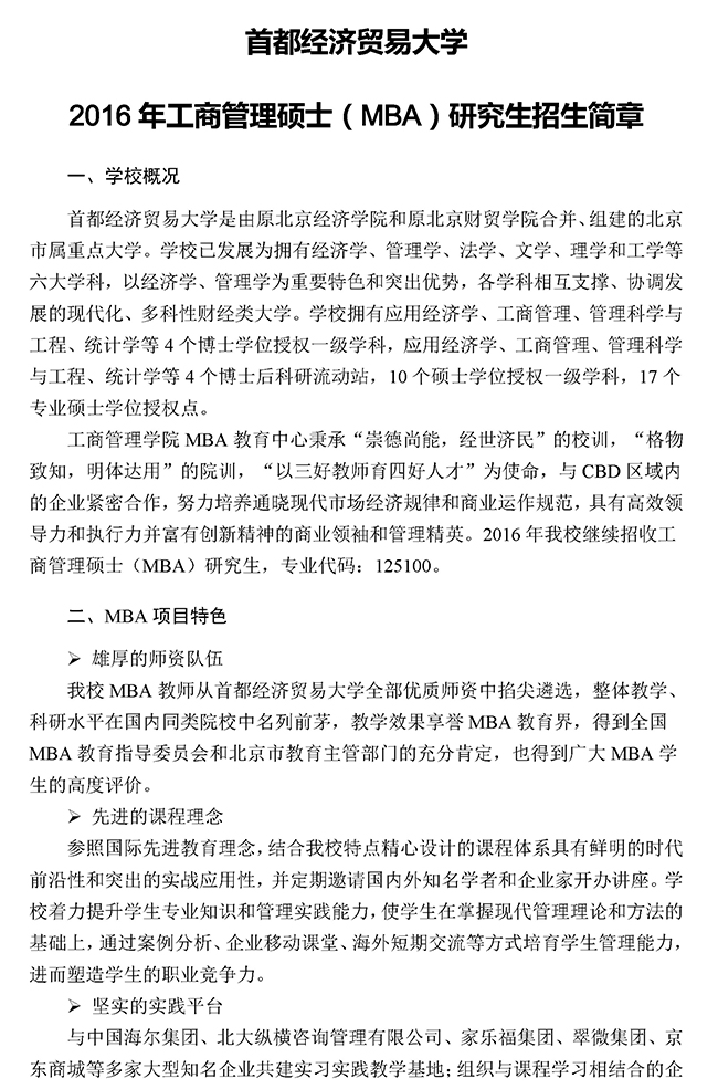 首都经济贸易大学2016年MBA招生简章