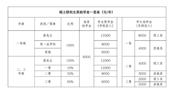 同时,为提高研究生培养质量水平及待遇标准,我校将大幅度提升奖助经费投入,建立健全多元奖助,如国家奖学金、学业奖学金、国家助学金、学生助研金、研究生科技创新扶持奖励基金、国家助学贷款等。具体为: