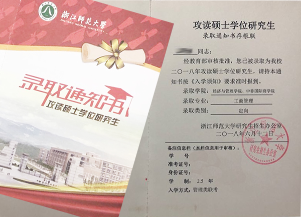 附:研究生录取通知书