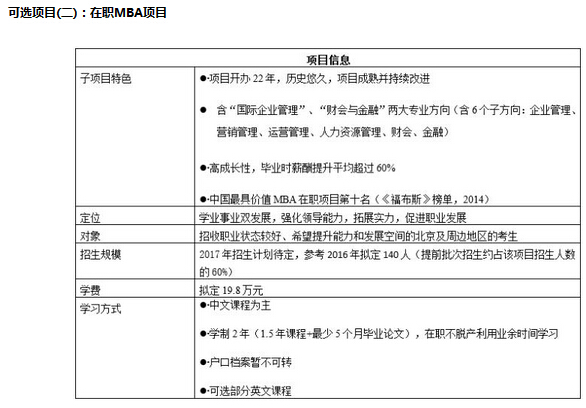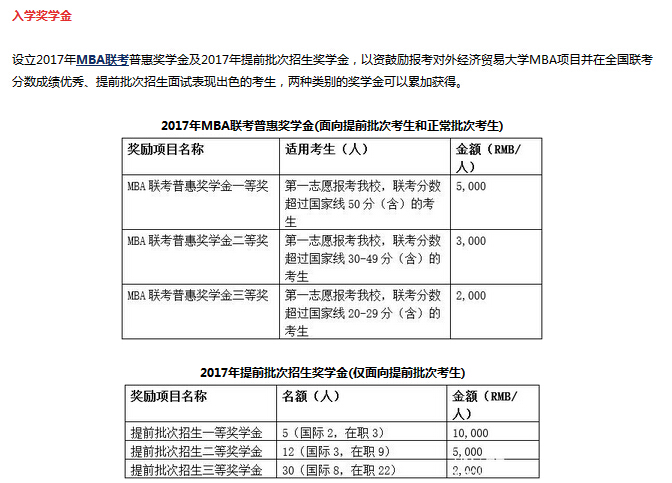 2017年对外经济贸易大学MBA项目招生政策: